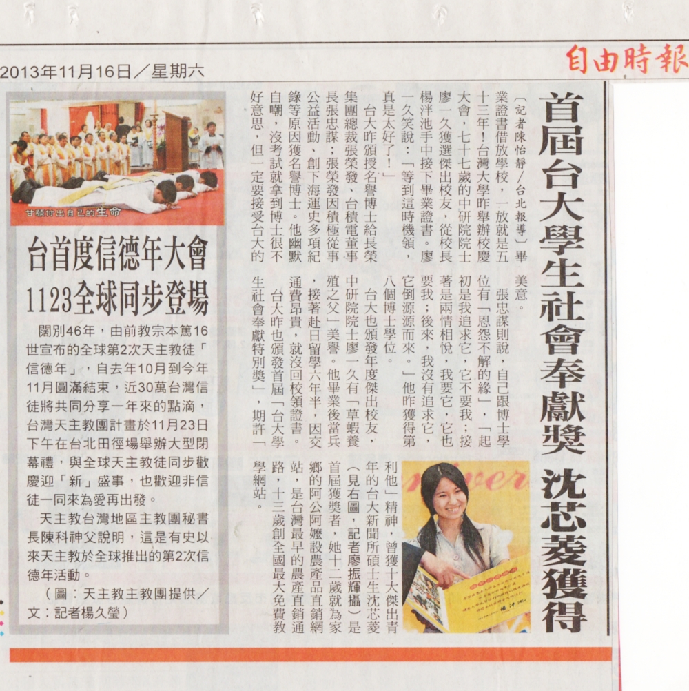 22歲的沈芯菱,出身雲林貧寒家庭,11歲就立志獻身公益,以一己之力,為弱勢學生架設免費教學網
